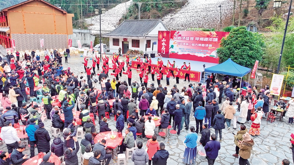 據(jù)了解,為了準(zhǔn)備此次庖湯宴,去年12月底,石門(mén)鎮(zhèn)總投資120余萬(wàn)元開(kāi)始進(jìn)行橫溪古鎮(zhèn)舊房改造提升項(xiàng)目,著力打造“古鎮(zhèn)庖湯宴”品牌。經(jīng)過(guò)項(xiàng)目改造,古鎮(zhèn)完成全面升級(jí)。不僅如此,石門(mén)鎮(zhèn)政府還不斷通過(guò)“線上+線下”的宣傳方式,提升當(dāng)?shù)芈糜螛I(yè)影響力,積極制作旅游宣傳視頻,此次活動(dòng)帶動(dòng)引流2000人次。(柯明宇 攝)