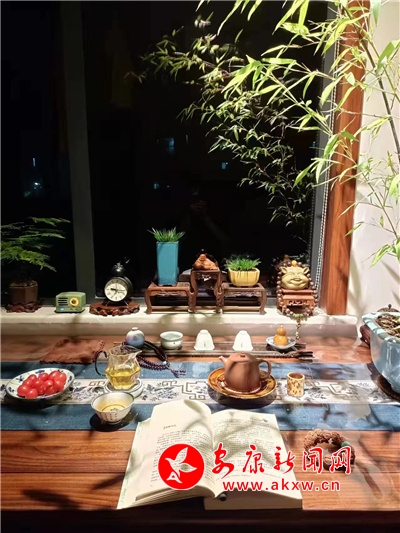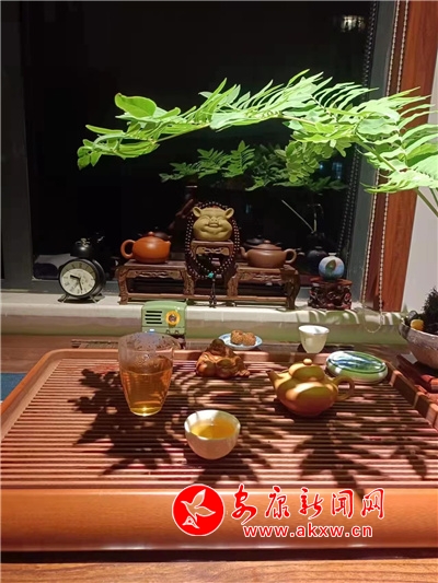 次日,我便聯(lián)系他,欲欣賞一下他的書房陳設(shè),他欣然允之,發(fā)了書房的照片。但見潔凈的白色窗臺(tái)上擺放著清秀的文竹、蔥綠的石菖蒲、一尊笑容可掬的彌勒佛、精巧小豬擺件上系著一串佛珠,雞翅木書桌上擺放著古樸典雅的茶具旁擺置一株紫竹。彼時(shí),許是他正品著香茗,展卷而讀,然后進(jìn)入一個(gè)縱橫千萬(wàn)里,上下幾千年的世界。徐徐夏風(fēng),紫竹搖曳,竹影映射于書,似也愜意。WCL安康新聞網(wǎng)