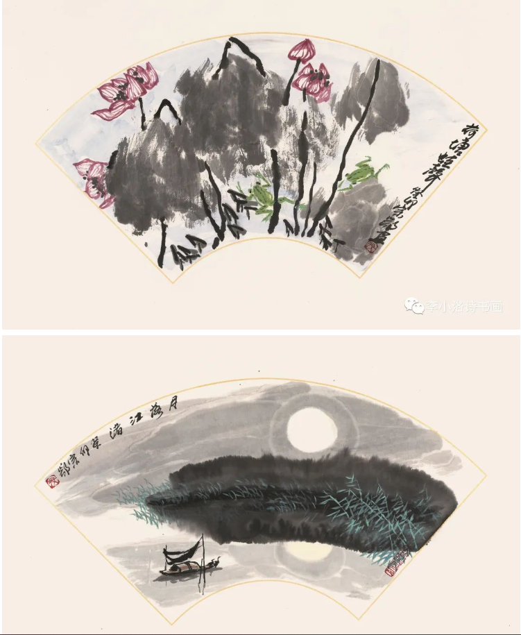 詩人寇宗鄂和林莽,均為《詩刊》編委,都曾擔(dān)任過《詩刊》的編輯部主任?茏诙踉鴰煆闹剿嫾倚毂蓖,詩人牛漢,詩畫兼擅。林莽作為白洋淀詩群和朦朧詩重要代表詩人,詩畫相融,桃李天下。張瑞田早年寫詩,后來多寫散文和書畫評論,是當(dāng)今活躍的評論家和書家。李木馬,李小洛,都曾參加過《詩刊》社的“青春詩會”,就讀魯迅文學(xué)院高研班,在詩歌和書畫創(chuàng)作上多年努力,取得了一定的成績……一人一格、一人一品,一扇一意、一扇一味,五位詩人作家的詩意筆墨,傳遞著各自對生活、藝術(shù)與世界的熱愛,認(rèn)知與發(fā)現(xiàn)。君子和而不同,透過一幀幀詩意盎然的扇面小品,在交相輝映的筆情墨趣中,可以看到他們相互啟迪,感染和照亮的友誼與藝術(shù)追求。