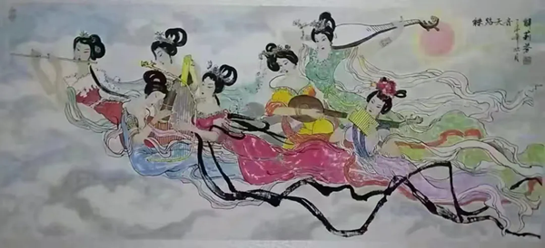 解大姐是陜北人,性格開朗、直率,說話中間或帶出一些濃重的陜北口音。雖說她主業(yè)從于政界,但她微笑的背后卻潛藏著不可掩飾的藝術天賦,揮發(fā)著令人奪目的藝術才情。繁雜的政務工作之余,她創(chuàng)作不輟,堅持不懈,居然在多個藝術門類收獲頗豐,好評連連。寫小說,她寫出幾十萬字的長篇出版發(fā)行;寫劇本,竟拍成了電影予以公映;學國畫,亦讓藝術界的大咖贊口不絕。我雖不才,空有浮名,但深耕藝界多年,對于其中的好賴還能分出一二。我感到,一個人的人品和藝品基本一致,解大姐的藝術,是扎根于她熟悉的陜北大地的藝術,是生長在山峁峁上經歷風霜雨雪的藝術,就像那陜北倔強的疙瘩柳,散發(fā)著對土地對生活的親近和熱情,對人生價值實現的不屈和追求。看到她的國畫新作,有陜北剪紙等民間藝術的滋養(yǎng)和影響,真切而樸實。她的飛天人物系列,泥古而不落窠臼,使我想到疙瘩柳條隨風擺動的婀娜風姿,溫溫潤潤,令人遐思和向往;她的花鳥畫作,使我想到陜北山野一片蒼茫之間,一朵兩朵盛開的山丹丹花,嬌艷得令人不忍觸手;她的山水畫作,又猶如陜北山原上嫩黃的棗花,洋溢著撲面而來的質樸、清新和率真之氣。