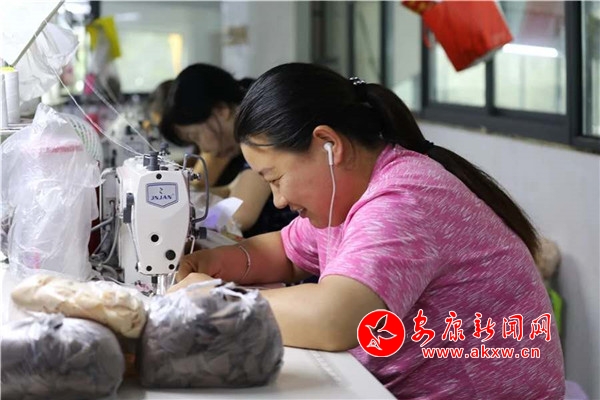 一湖好水滋潤一方百姓。興起的社區(qū)工廠,就設(shè)在湖岸不遠的社區(qū)旁,還沒等孩子退去睡眼朦朧,縫紉機便噠噠咔咔地響了起來。日出而作、日落而息的模式被打破,山里人也從靠天吃飯的農(nóng)民變成了每月領(lǐng)工資的“藍領(lǐng)”。與水村漁市相映襯的,是一個個、一箱箱、一批批呆憨嬌萌的毛絨玩具,帶著高山流水的雅韻,承載著山里人勤勞致富的夢想,從漢水出發(fā),一直走到海外。
