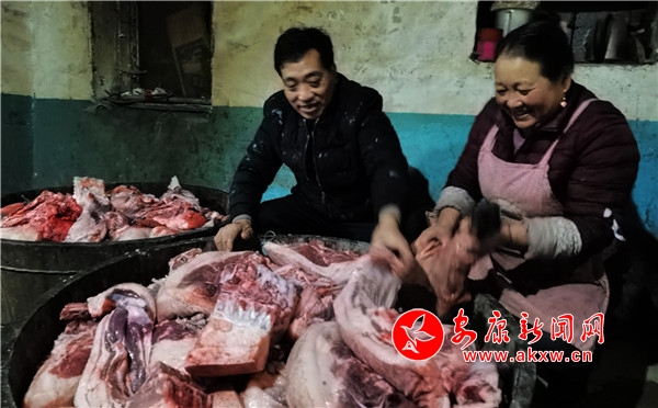 當(dāng)天,張成凱家一口氣殺了6頭豬,約1200斤,收入3萬多元;張秀柱家殺了2頭豬,400余斤,收入約1萬元。jEb安康新聞網(wǎng)